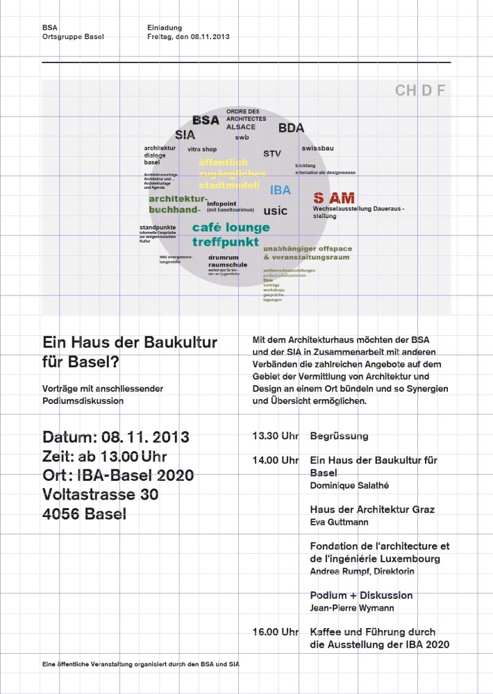 Ausgangspunkt der Initiative für «Ein Haus der Baukultur» ist die Feststellung, dass es unterschiedlichste Bemühungen gibt sich für eine bessere Wahrnehmung von Baukultur in der Gesellschaft zu bemühen. Mit dem Architekturhaus möchten der BSA