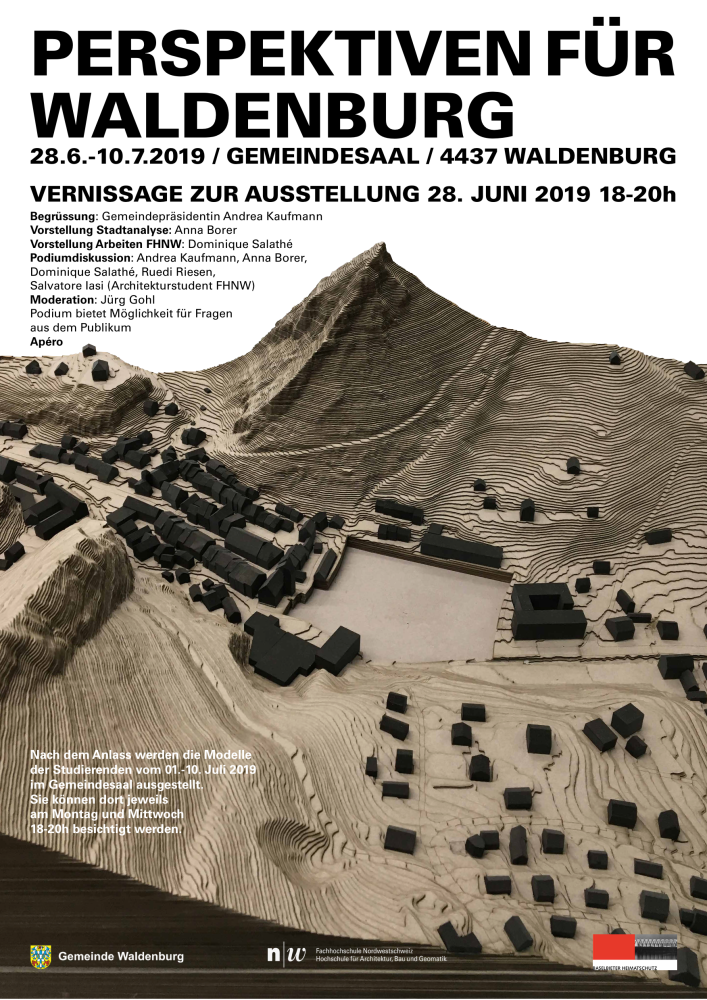 In Zusammenarbeit mit dem Baselbieter Heimatschutz haben Studierende des Bachelor Studienganges des Instituts Architektur der FHNW während einem Semester Chancen und Potentiale der Gemeinde Waldenburg untersucht. An einer öffentlichen Veranstaltung sind die Arbeiten ausgestellt und diskutiert worden.