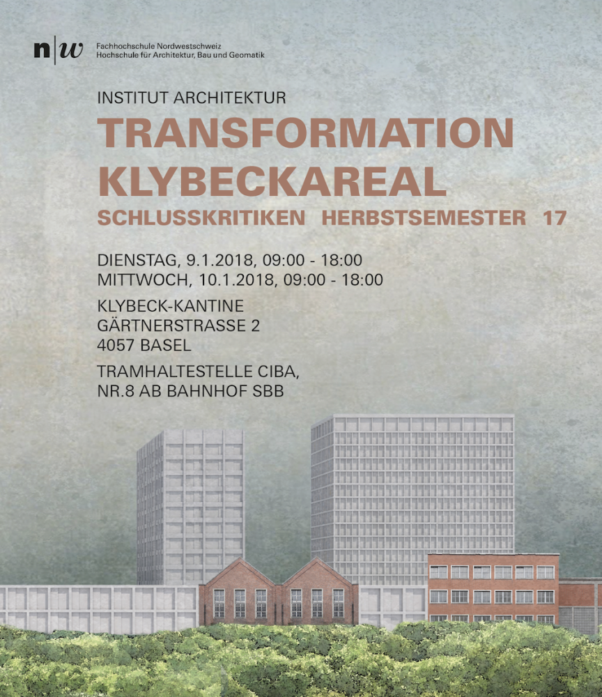 Aus aktuellem Anlass beschäftigt sich die Architekturabteilung der FHWN Institut Architektur mit der Transformation des Klybeckareales in Basel.