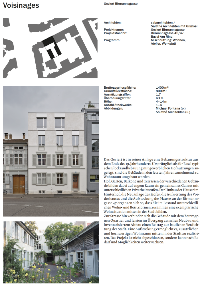 Im Rahmen der Ausstellung «Dichtelust» wird unter dem Titel «voisinages» die Gesamtbebauung Birmannsgasse gezeigt.